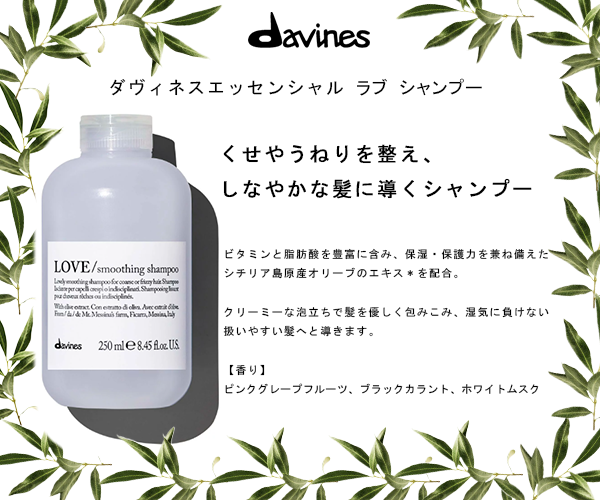 概要:イタリア発のヘアケアブランド ダヴィネスの、エッセンシャル ラブ シャンプーのバナー広告 目的:くせ・うねり・広がりなどの髪の悩みを持っている人にこの商品を使ってみたいと思ってもらう ターゲット:男女問わず良質で環境にも配慮された商品を使いたい人、市販のシャンプーより若干価格帯が高めのため、自己投資意識のある大人世代 デザインの意図:無駄を省いた控えめで上質な雰囲気のあるブランドイメージに合わせ、過度に装飾せずシンプルで落ち着いた印象になるよう心掛けた。自然環境への配慮やサステナビリティに積極的に取組んでいる企業なので、周りを植物の画像で囲み自然をイメージさせる装飾にした。